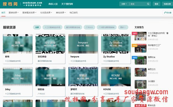 當然,如果想足不出戶的就完成以上這些工作,也是有辦法的。 專業的人做專業的事,比如搜檔網,就是一個搜集和整理了廣州杭州深圳遼寧常熟數以萬家的服裝批發檔口老板微信的網站。